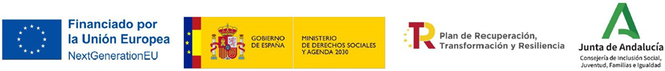 Proyecto financiado por la Consejería de Inclusión Social, Juventud, Familias e Igualdad (Junta de Andalucía), el Ministerio de Derechos Sociales y Agenda 2030 y la Unión Europea (Fondos Next Generation), dentro del Plan de Recuperación, Transformación y Resilencia.